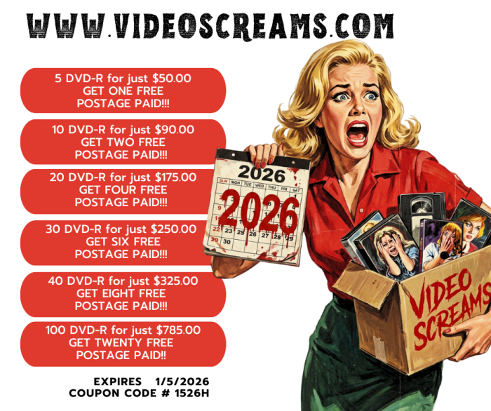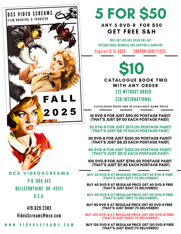 Not valid on Double Features, Serials, Collectors Clearance, Franco DVD's, special orders or merchandise